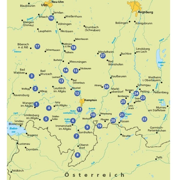Lindau, Oberstdorf, Kempten, Memmingen, Ulm, Pfronten, Füssen und Garmisch-Partenkirchen