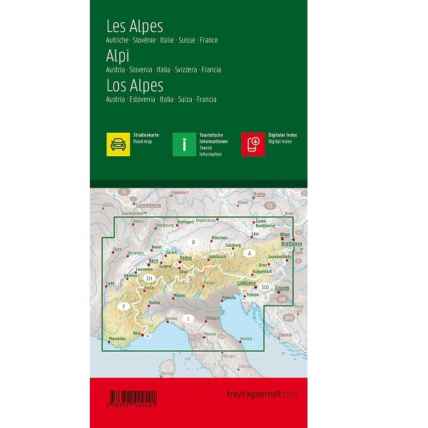 Bijzonder gedetailleerde wegenkaart met alle belangrijke aanduidingen en toeristische symbolen. Met register en aanduiding van campings en afstanden.