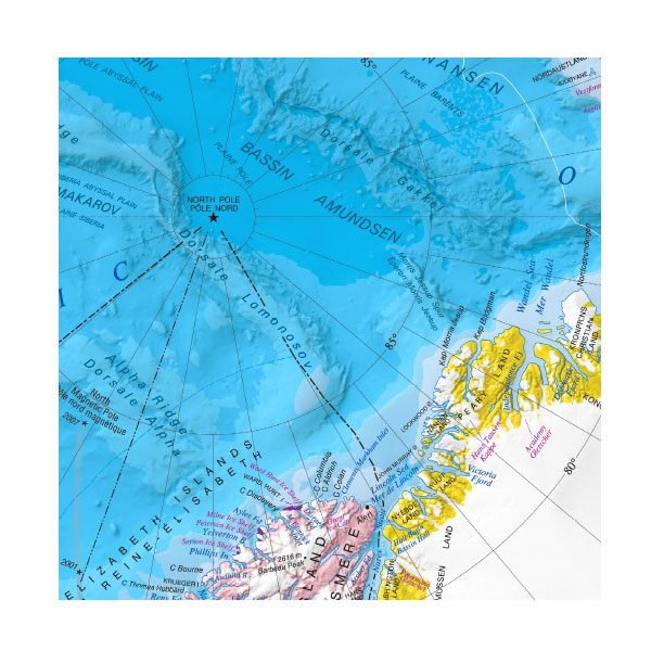 This map has just run out of copies. I know; how can anyone update Greenland? Well, we still have to update the program language to modern usage, and who knows, maybe we have to correct some errors. I don't know. Anyway, it's being updated, whoopie deal. It should be available again in January or February. The North Pole side was updated by Canada Map Office just before we first published this title, so needs no alteration. This title, by the way, has proven to be quite popular.